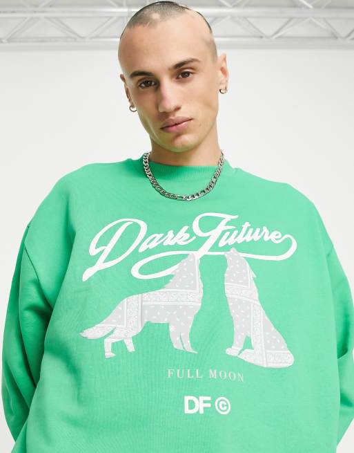ASOS – Dark Future – Grön sweatshirt i oversize med vargtryck framtill