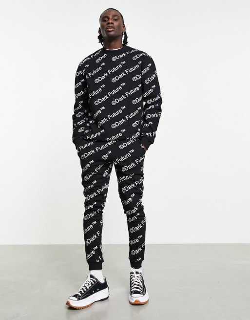 ASOS Dark Future – Svart, loggmönstrat, avslappnat set