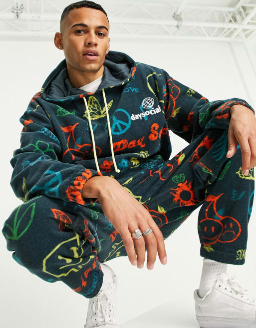 ASOS Daysocial – Marinblått, helmönstrat set i polarfleece
