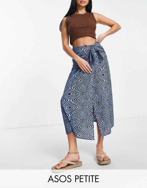 ASOS DEISGN Petite – Geometriskt mönstrad midiklänning med omlott-sarong