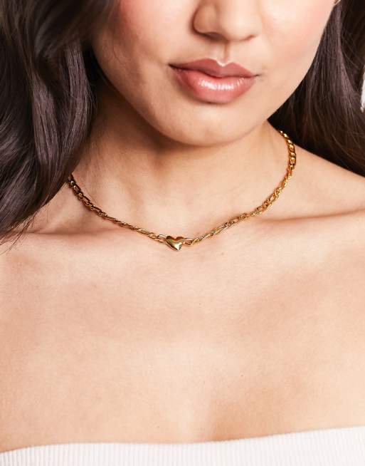 ASOS DESIGN – 14k Guldpläterat halsband med figarokedja och hjärta