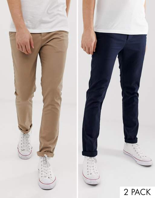 ASOS DESIGN 2-pack marinblå och beige skinny chinos SPARA