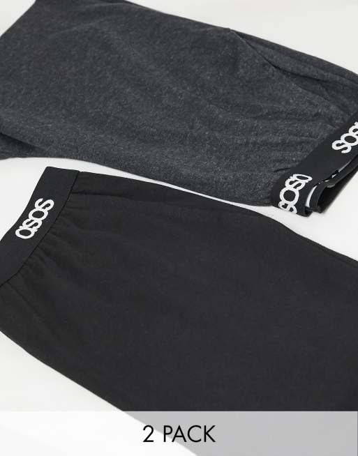 ASOS DESIGN – 2-pack Svart och mörkgråmelerade pyjamasunderdelar med logga på resåren – Spara med flerpack