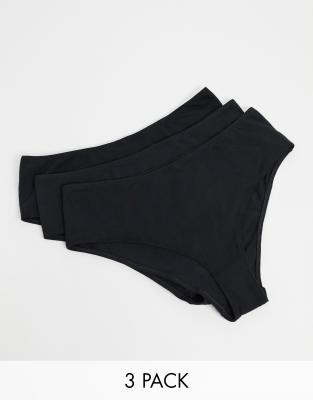 ASOS DESIGN – 3-pack svarta brazilian-trosor i bomull med hög midja