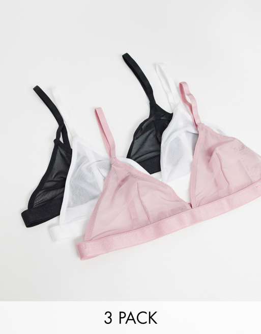 ASOS DESIGN – 3-pack trekantsbehå med mesh