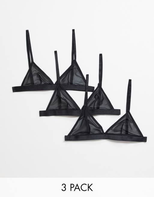 ASOS DESIGN – 3-pack trekantsbehå med mesh