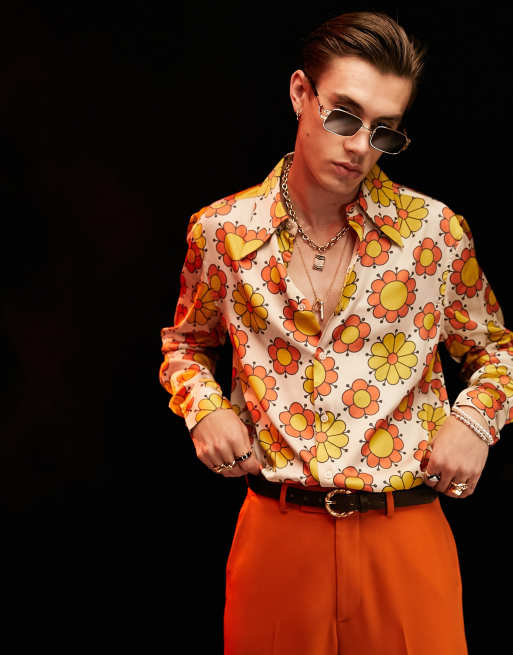 ASOS DESIGN – 70-talsblommig skjorta med stor krage