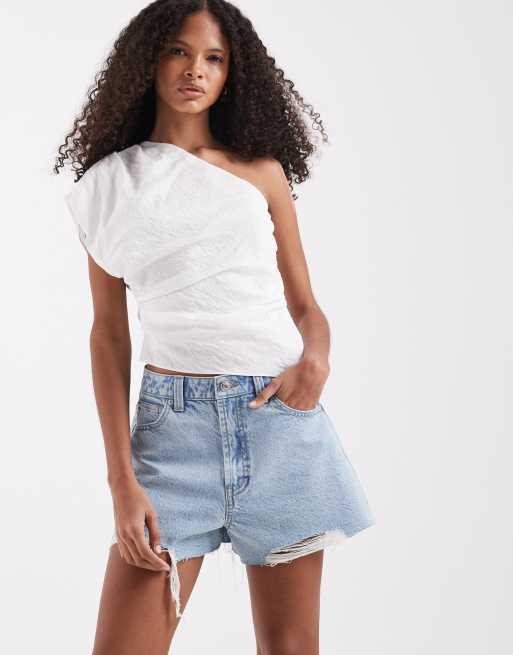 ASOS DESIGN – A-linjeformade jeansshorts med ljus tvätt
