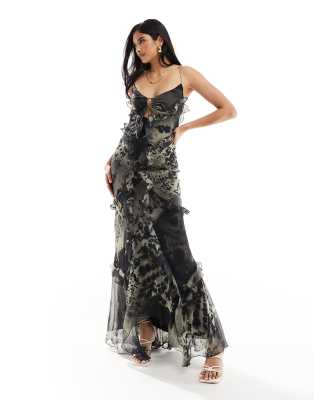 ASOS DESIGN – Abstrakt, leopardmönstrad maxiklänning med halterneck, volanger och utskurna detaljer