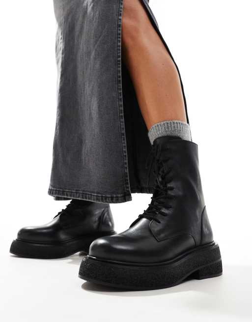 ASOS DESIGN – Addison – Svarta platta boots i läder med snörning