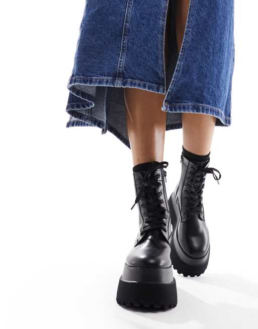 ASOS DESIGN – Alfresco – Svarta, grova boots med snörning