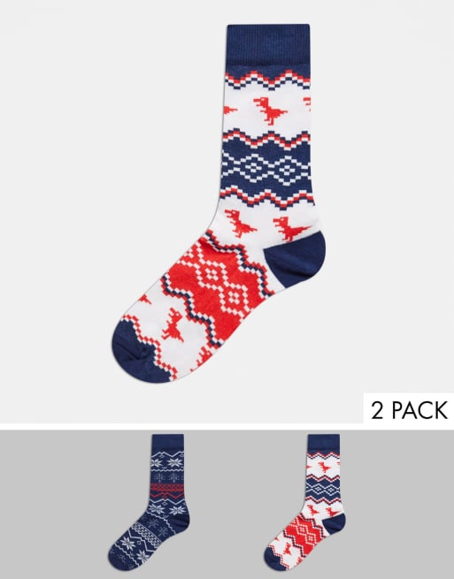 ASOS DESIGN – Ankelstrumpor med dinosauriemönster i fairisle-stil, 2-pack