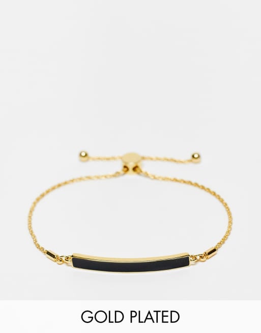 ASOS DESIGN – Armband med 14K guldplätering och svart bricka i emalj