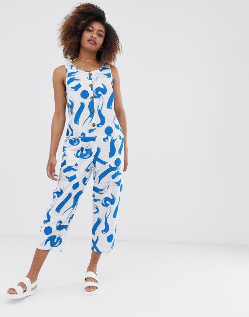 ASOS DESIGN – Ärmlös, mönstrad overall med knappar framtill