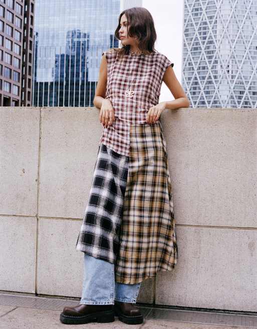 ASOS DESIGN – Asymmetrisk midiklänning med mixat, rutigt mönster