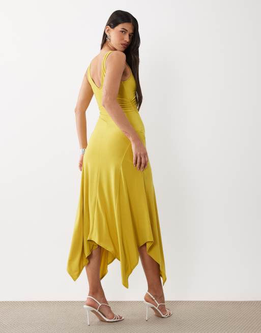 ASOS DESIGN – Avokadogrön midiklänning med v-ringning och asymmetrisk fåll
