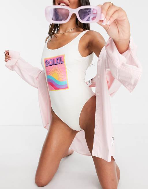ASOS DESIGN – Baddräkt med djup halsringning och "soleil"-tryck