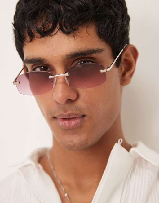 ASOS DESIGN – Båglösa, runda solglasögon med lila glas och silverfärgade skalmar