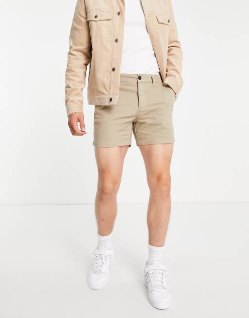 ASOS DESIGN – Beiga korta chinoshorts med smal passform