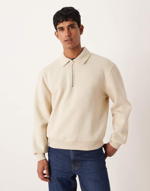 ASOS DESIGN – Beige, avslappnad sweatshirt med dragkedja och boxig passform