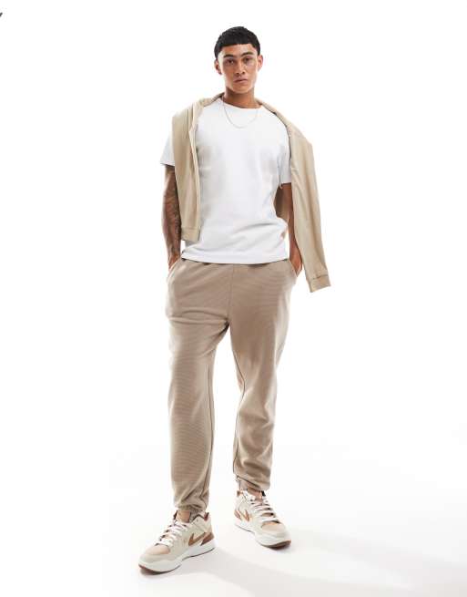 ASOS DESIGN – Beige, avsmalnande, ribbade mjukisbyxor