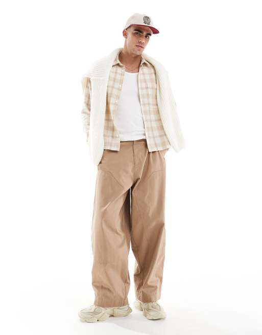 ASOS DESIGN – Beige, baggy canvasbyxor i oversize med knäpaneler