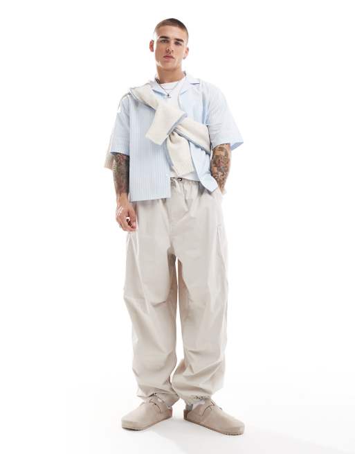 ASOS DESIGN – Beige, baggy fallskärmsbyxor i oversize och cargostil