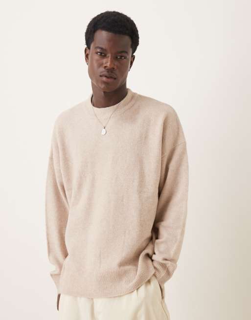 ASOS DESIGN – Beige, borstad och stickad tröja i oversize med rund halsringning
