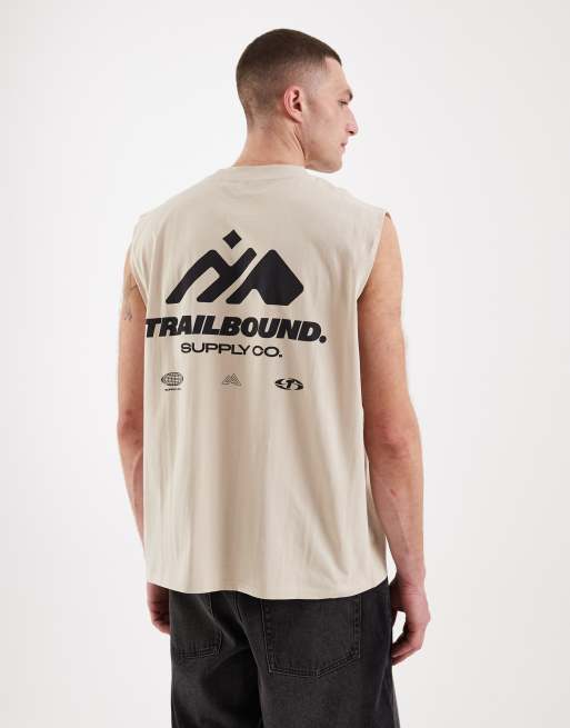 ASOS DESIGN – Beige, boxigt linne i oversize med tryck fram- och baktill