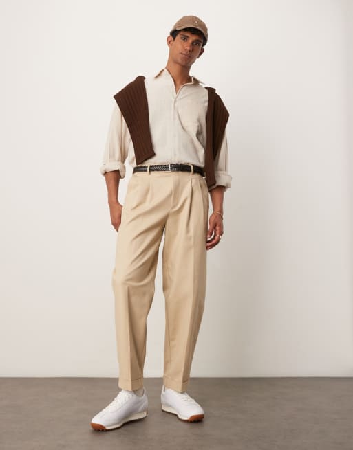 ASOS DESIGN – Beige chinos i oversize och bomull med avsmalnande passform