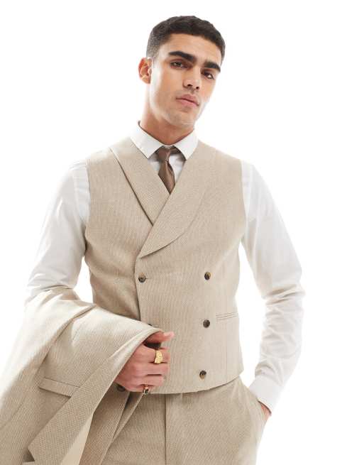 ASOS DESIGN – Beige, extra smal kostymväst i ylle med dubbelknäppning och textur