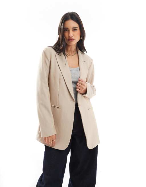 ASOS DESIGN – Beige, figursydd kavaj med avslappnad passform