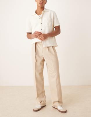 ASOS DESIGN – Beige finbyxor med vida ben, bälte och veck framtill