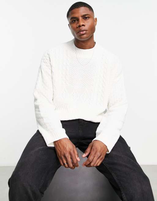 ASOS DESIGN – Beige kabelstickad tröja med kontrasterande design