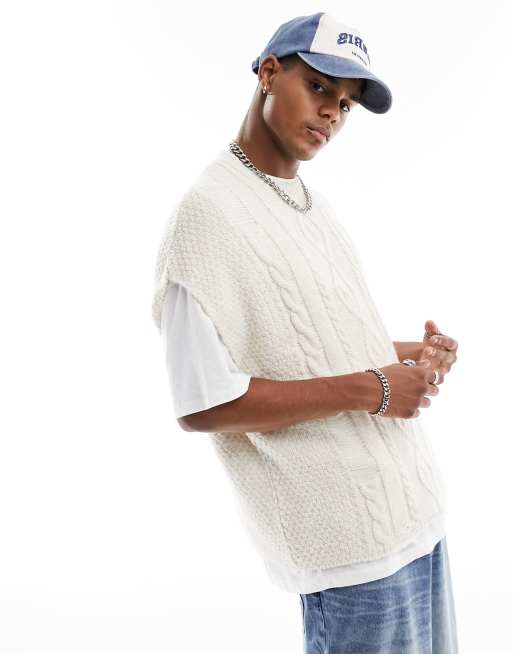 ASOS DESIGN – Beige kabelstickat linne i oversize med slitna detaljer