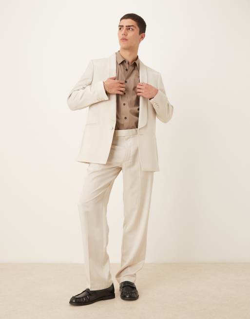 ASOS DESIGN – Beige kostymbyxor i satin med raka ben