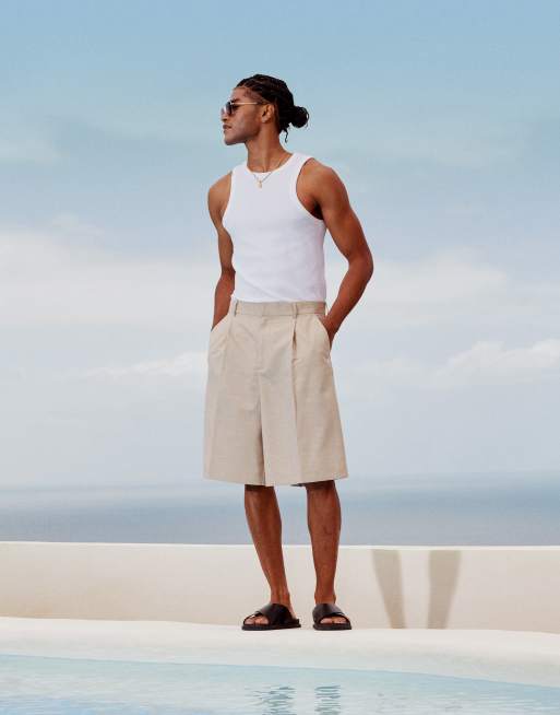 ASOS DESIGN – Beige kostymshorts i bermudastil