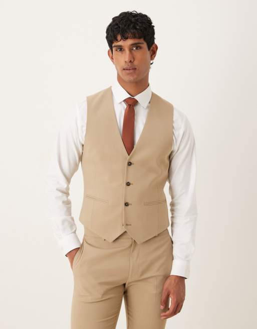 ASOS DESIGN – Beige kostymväst med extra smal passform