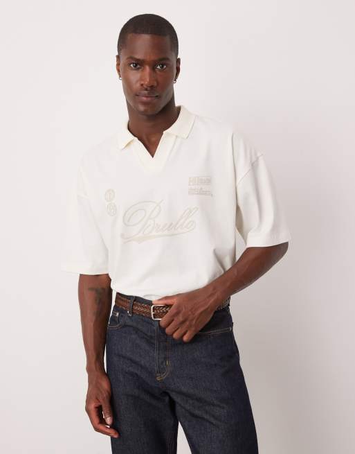 ASOS DESIGN – Beige kraftig pikétröja med tryck