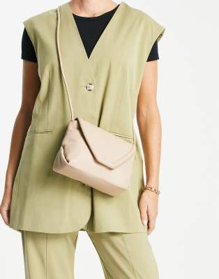 ASOS DESIGN – Beige kuvertväska i läder med axelrem och rund passpoal