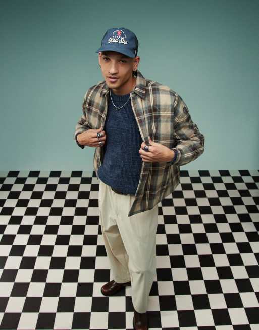 ASOS DESIGN – Beige, kviltad skjorta i boxig oversize-passform med volymärmar och rutigt mönster