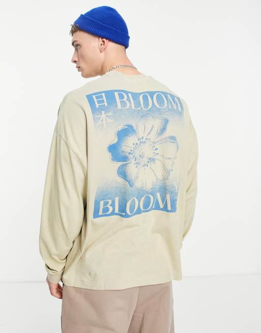 ASOS DESIGN – Beige långärmad t-shirt i oversize med blommigt tryck
