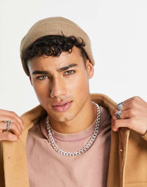 ASOS DESIGN – Beige liten fiskarmössa med ribbmönster