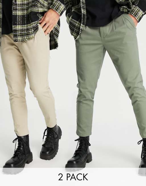 ASOS DESIGN – Beige och khakifärgade chinos med cigarette-passform, 2-pack