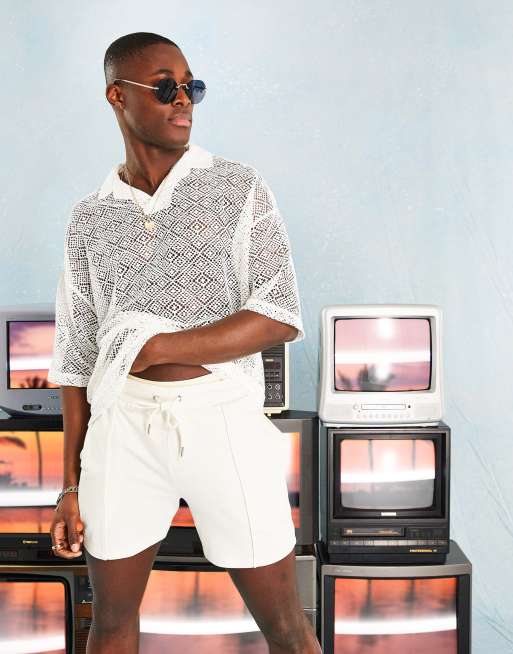 ASOS DESIGN – Beige pikétröja i mesh och oversize