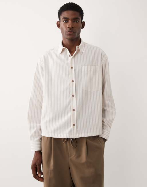 ASOS DESIGN – Beige, randig skjorta i oversize med boxig passform