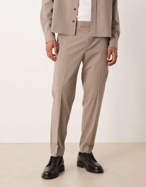 ASOS DESIGN – Beige, randiga, avsmalnande byxor, del av set