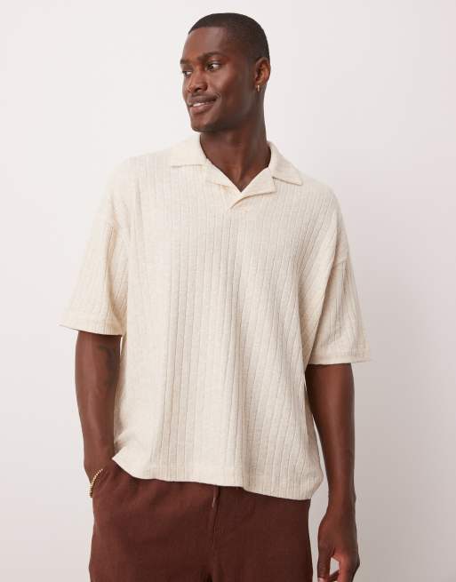 ASOS DESIGN – Beige, ribbad pikétröja i oversize med boxig passform
