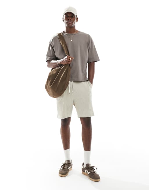 ASOS DESIGN – Beige, ribbade shorts i oversize av velour