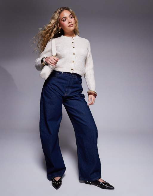 ASOS DESIGN – Beige, ribbstickad kofta med guldfärgade knappar